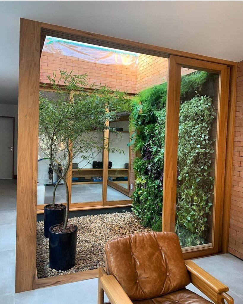 - Móveis não são necessários: é possível dispensar os móveis. O ambiente pode ser somente um espaço para plantas e hortas.