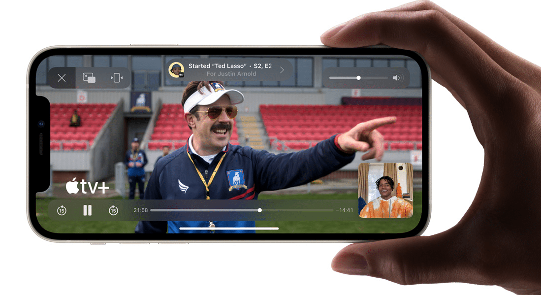 Transformações foram feitas no FaceTime, apresentando o SharePlay, converse com seus amigos enquanto assiste um filme ou serie, você consegue compartilhar a tela, uma experiencia única com amigos e família. Também vem com esta novidade o audio espacial, você poderá agendar chamadas com o FaceTime.