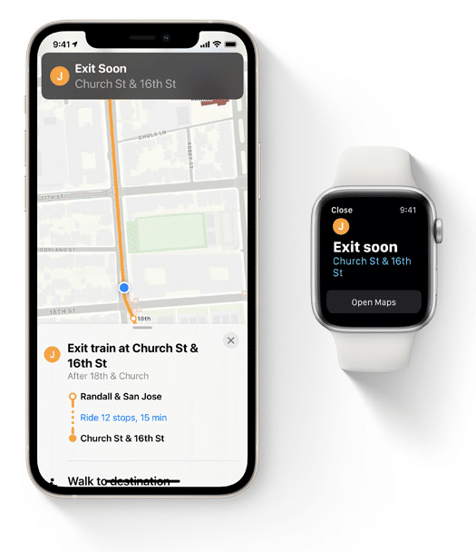 A integração com o sistema de transporte público mostra os horários e as estações mais próximas. Permite fixar suas rotas favoritas na parte superior.