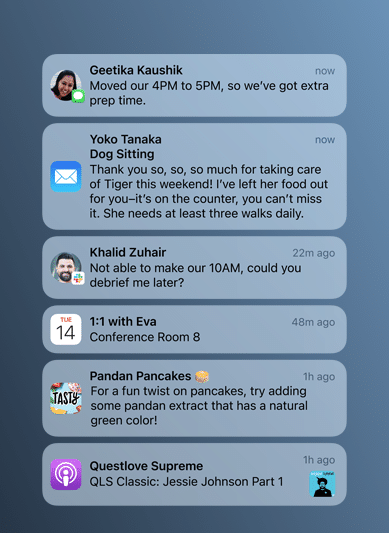 As notificações têm um novo design, com as fotos dos contatos e ícones maiores para os apps, deixando a identificação mais fácil.
