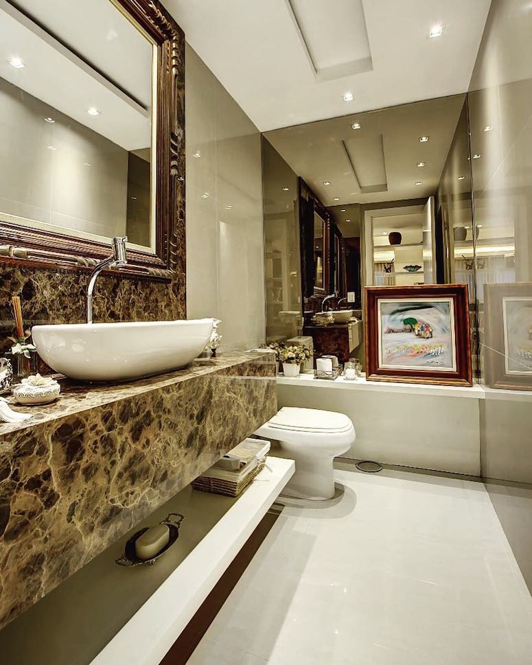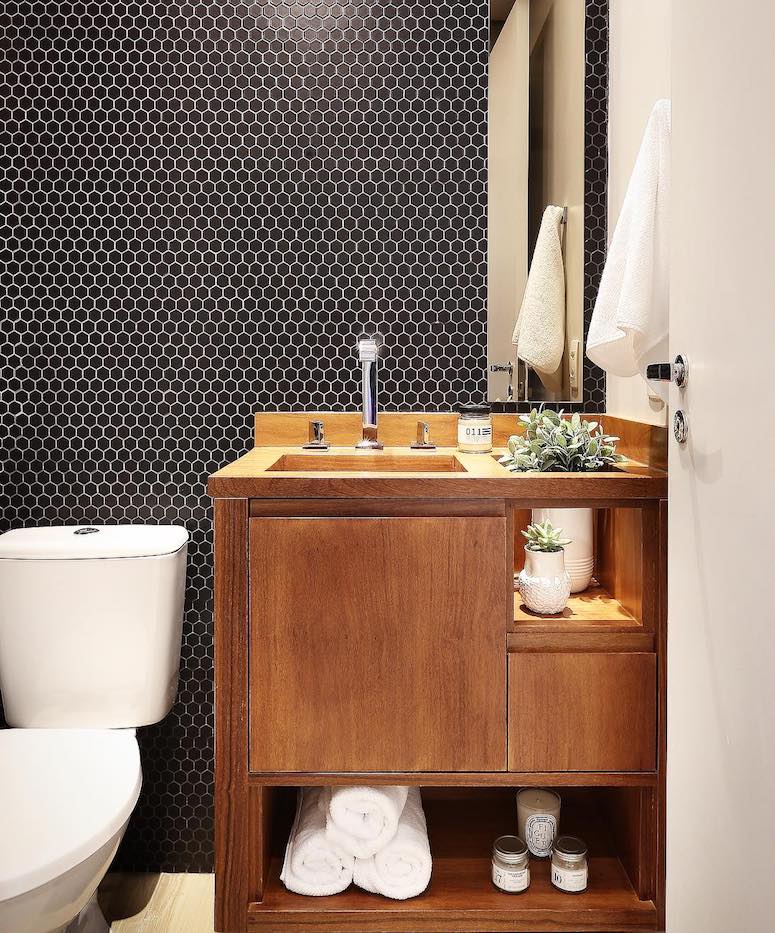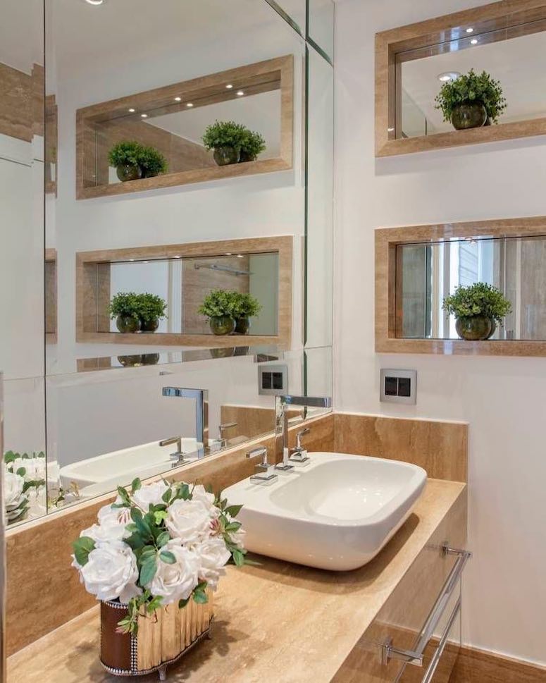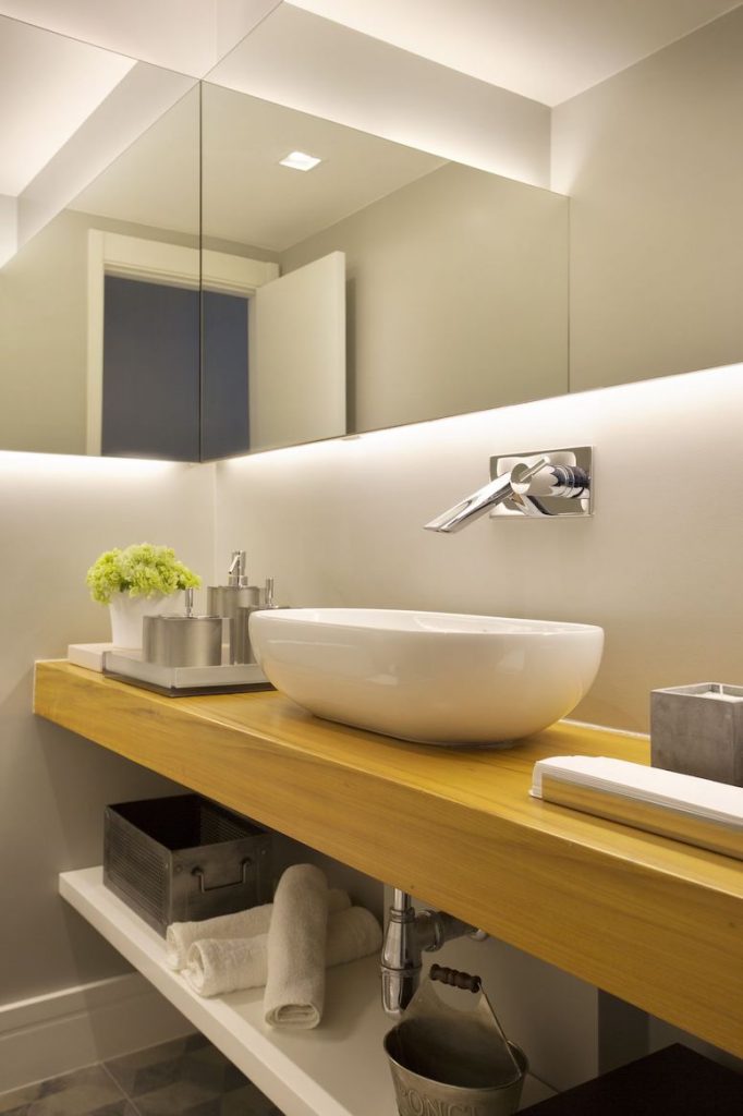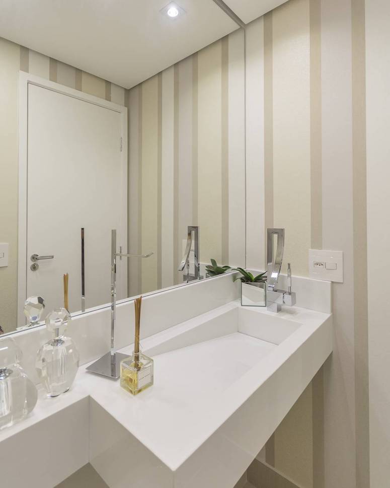 “O espelho é fundamental em espaços pequenos, pois traz amplitude ao ambiente. Se possível procure usar a peça com a mesma largura da bancada”, finaliza a profissional.