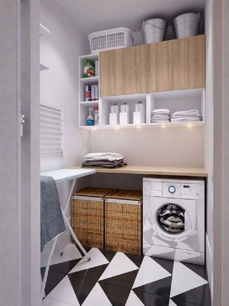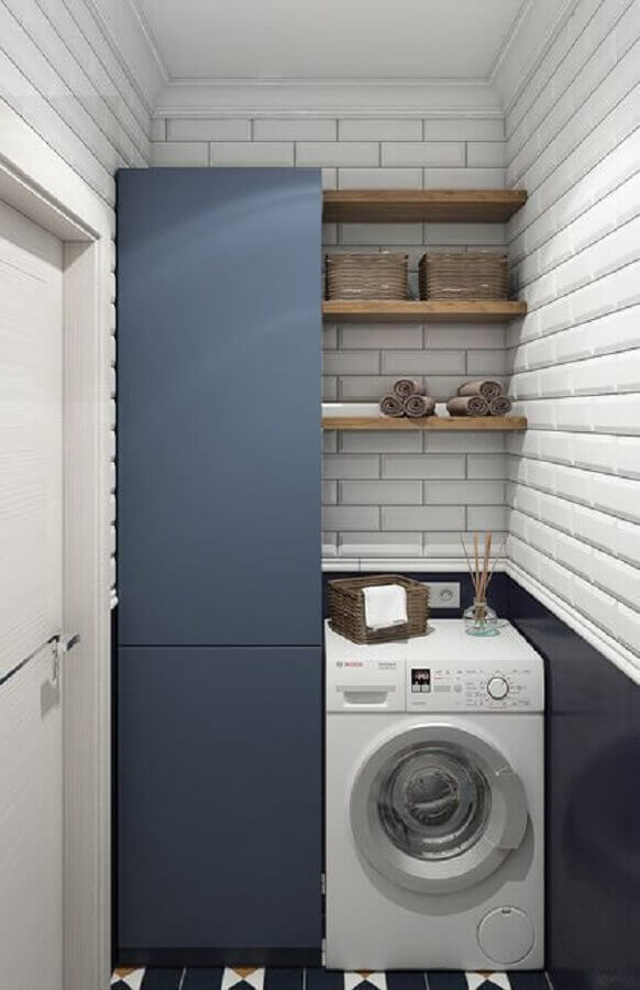 Além dos tradicionais modelos de armário pequeno para lavanderia, também é interessante utilizar outros itens que podem te ajudar a manter o ambiente sempre em ordem e funcional como nichos e prateleiras. Uma dica também essencial para manter o armário pequeno para lavanderia sempre em ordem é utilizar cestos e caias organizadoras buscando sempre separar os produtos da área de serviço por categoria.