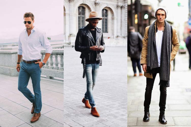 Observe que nas produções, geralmente os homens usam a barra da calça e mangas de camisas dobradas, além de ter sempre as golas no lugar. As meias nunca aparecem, mas se aparecem fazem parte da composição do look.
