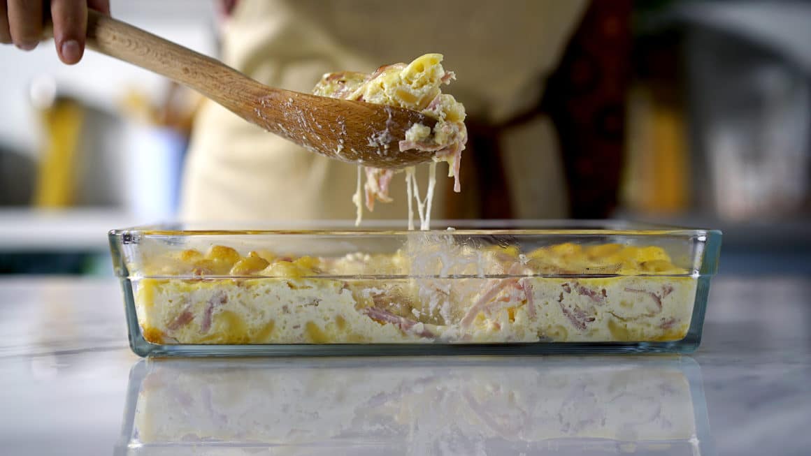 MACARRÃO AO FORNO COM PRESUNTO E QUEIJO