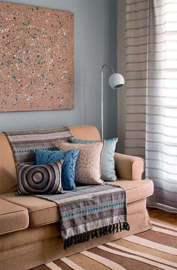 Mas quem gosta de um estilo mais arrumado, a manta para sofá pode ser colocada dobrada ao meio sobre os braços do sofá ou mesmo pegando apenas uma parte do assento, assim como você pode ver na foto abaixo.