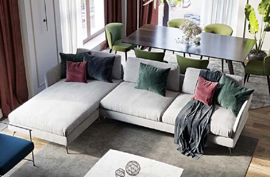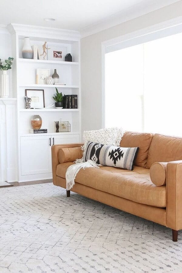 Mas quem gosta de um estilo mais arrumado, a manta para sofá pode ser colocada dobrada ao meio sobre os braços do sofá ou mesmo pegando apenas uma parte do assento, assim como você pode ver na foto abaixo.