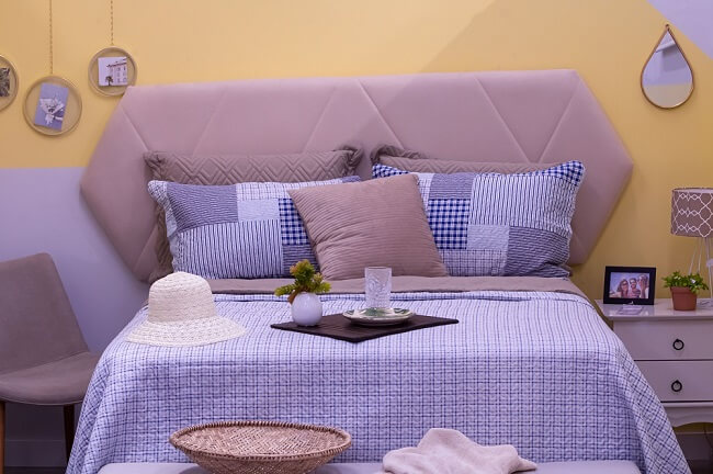 Outro detalhe que pode fazer toda a diferença é uma cabeceira. Ela não só ajuda a deixar a décor mais completa, como também transforma o dormitório em um ambiente visualmente receptivo – se não quiser comprar uma, use almofadas bem macias para combinar com os travesseiros e criar uma estética agradável.