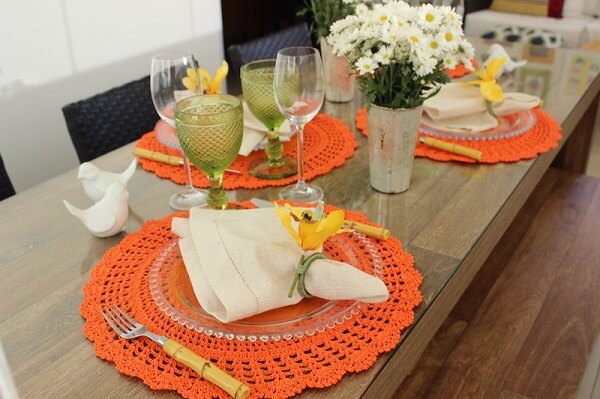 A mesa posta para churrasco deve ter um aspecto descontraído e prático, mas ao mesmo tempo precisa contar com um visual bonito e elegante. Você pode decorar a mesa posta para churrasco com jogos americanos ou sousplats feitos de crochê.