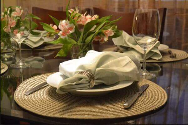 A toalha de mesa é uma peça fundamental na harmonia da decoração da mesa posta para jantar, porém você pode substituí-la por um jogo americano.