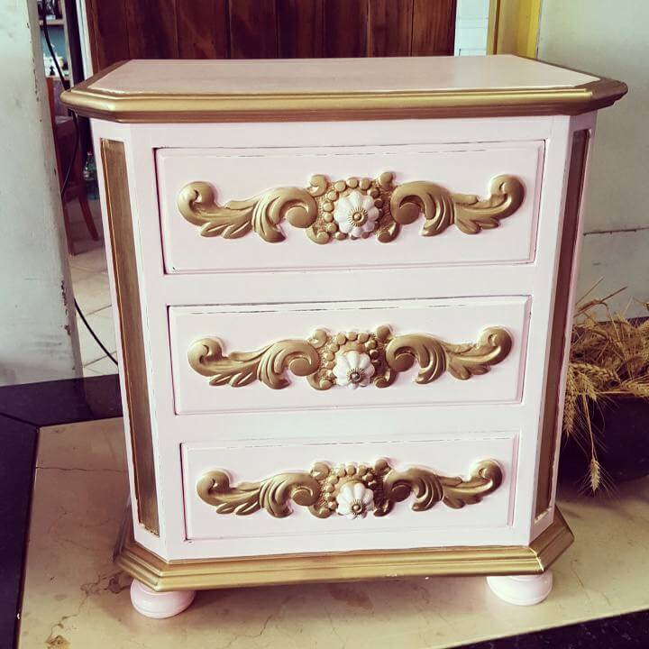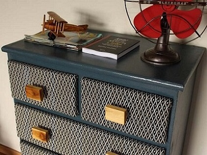 Outra forma de como reformar móveis que também envolve tinta é o estêncil. Essa é uma forma super legal de estampar o seu móvel e, para fazê-lo, você precisa apenas de um molde e de tinta.