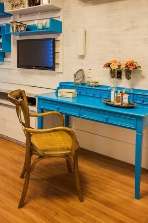 A pintura é uma das maneiras mais simples e comuns que você pode encontrar de como reformar móveis. Uma ótima ideia e que está super em alta é pintar móveis antigos de cores vivas e vibrantes. Acredite, o resultado final é super legal!