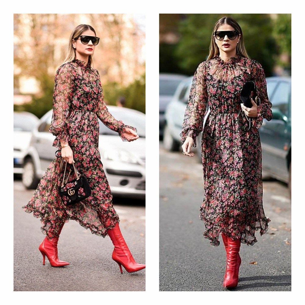 Em busca de um look com pegada folk? Faça como a belíssima Thássia Naves e se jogue no duo bota de cano longo + vestido floral. É uma alternativa TÃO prática que você, certamente, vai acabar viciando!