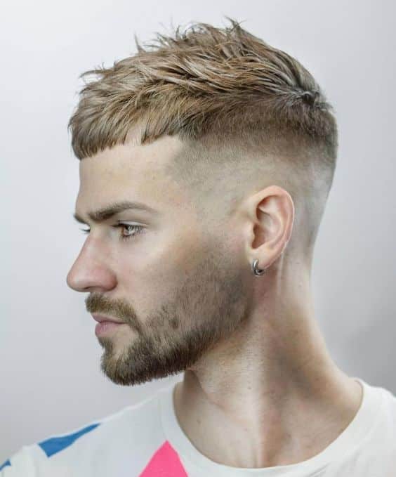 Como pedir ao barbeiro: “Topo com textura, 2–3 cm; laterais com fade baixo ou médio.”