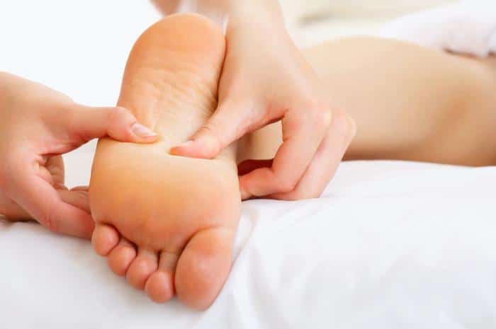 12. Com os polegares, pressione toda a planta do pé. Se algum ponto estiver dolorido, massageie a região por mais tempo.