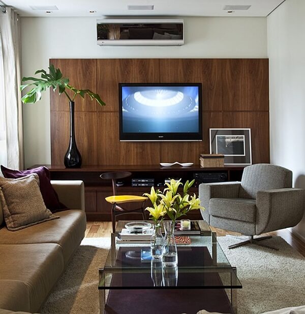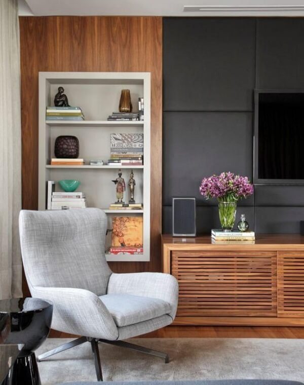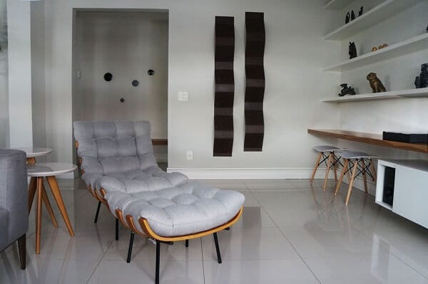 - Poltrona cinza fixa: modelo mais comum na decoração;