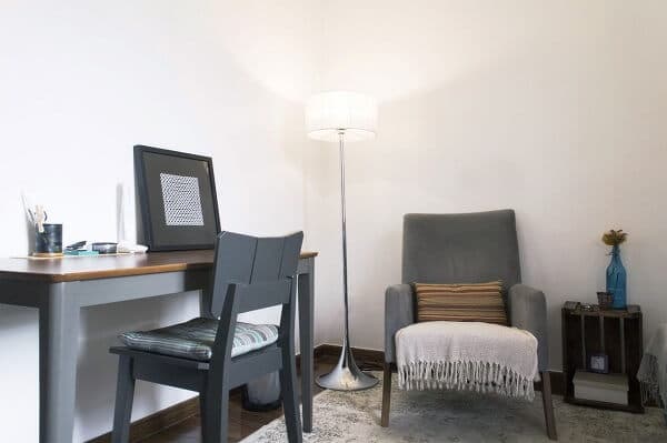 - Poltrona cinza giratória: são indicadas para ambientes com espaços reduzidos;