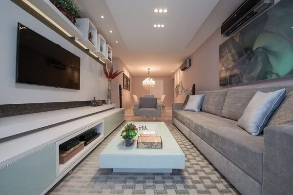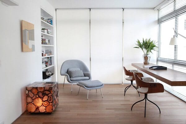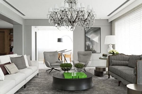 Contudo, é válido comentar que as diferentes tonalidades irão transmitir diferentes sensações no ambiente. Por isso, caso você resida em um ambiente pequeno, e deseja incluir uma poltrona decorativa para complementar o espaço procure escolher uma poltrona cinza claro. Isso porque, a poltrona cinza claro imprime a sensação de amplitude no ambiente, consequentemente aumentando o tamanho do seu cômodo.