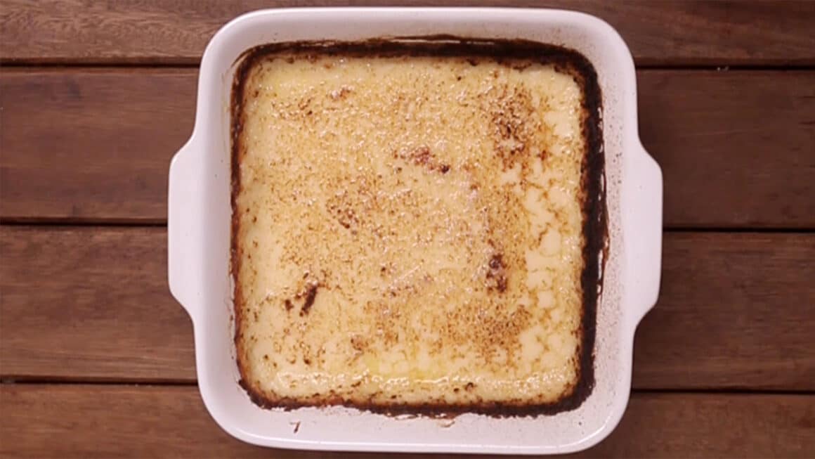 - Dispor metade do purê em uma forma refratária, colocar a outra parte de queijo gruyère e cobrir com o restante do purê.