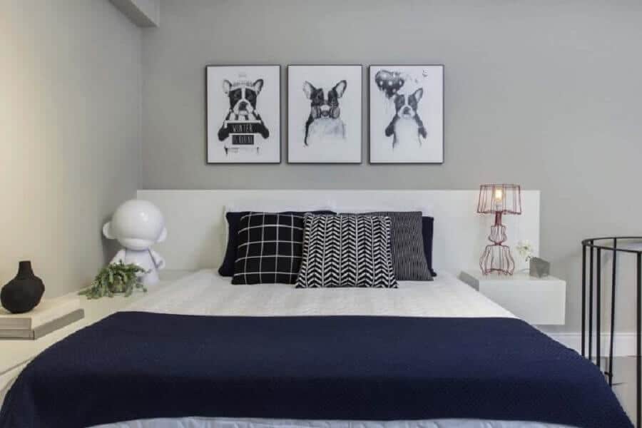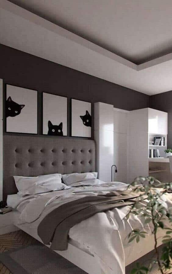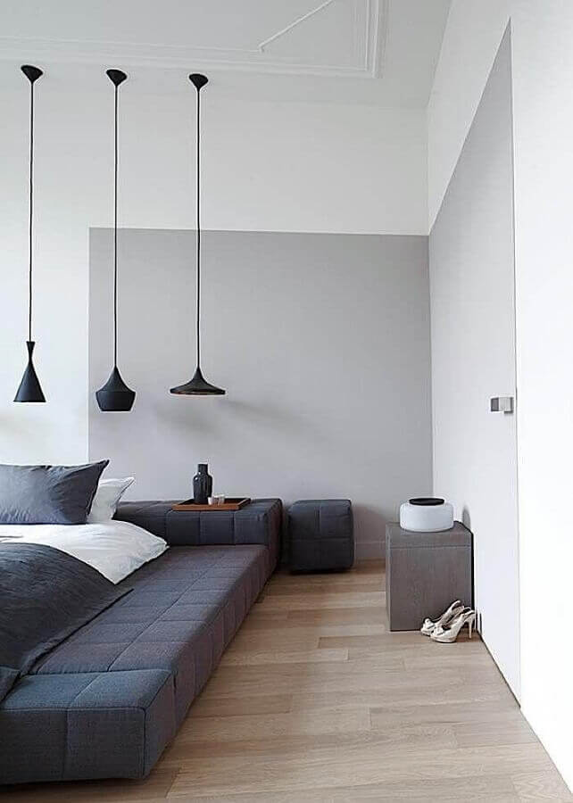 O quarto cinza e branco é uma combinação sem erro, afinal, são duas cores neutras e que facilmente combina tanto com uma decoração clássica quarto com um estilo mais contemporâneo de quarto cinza.