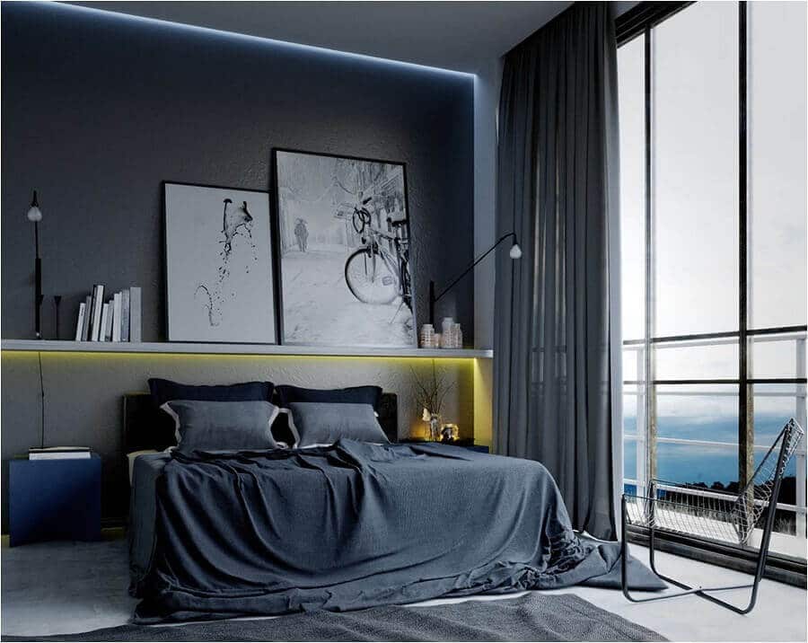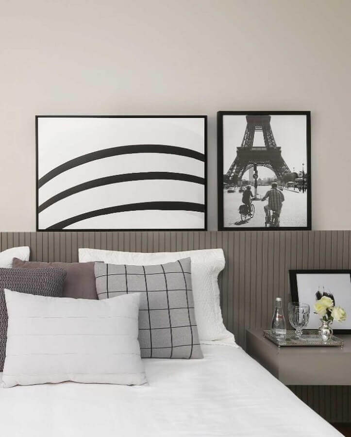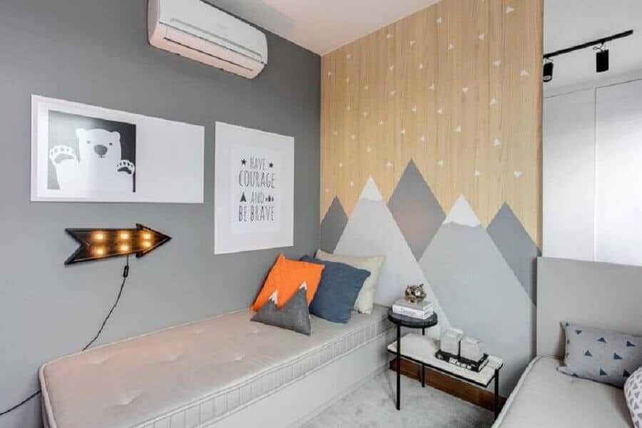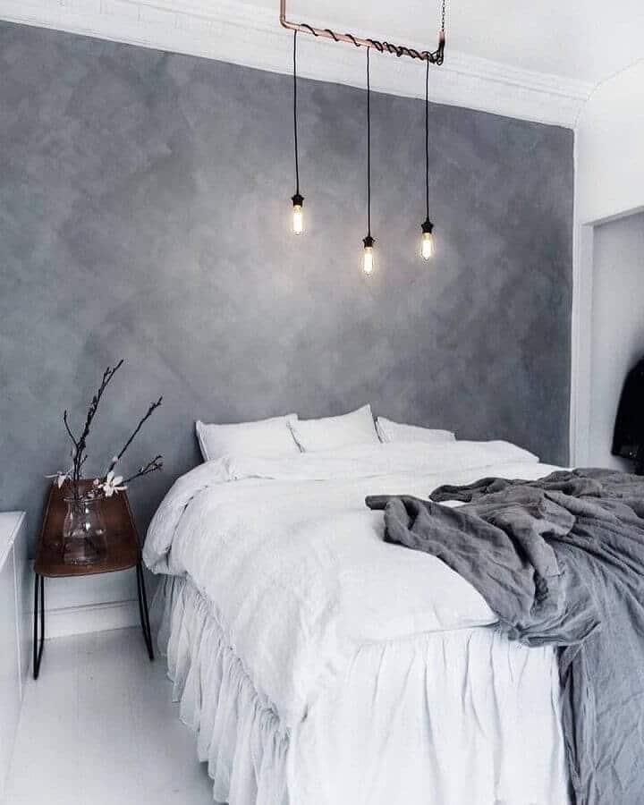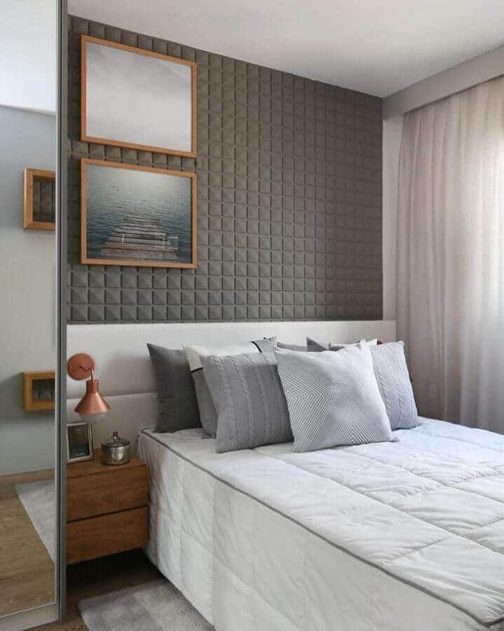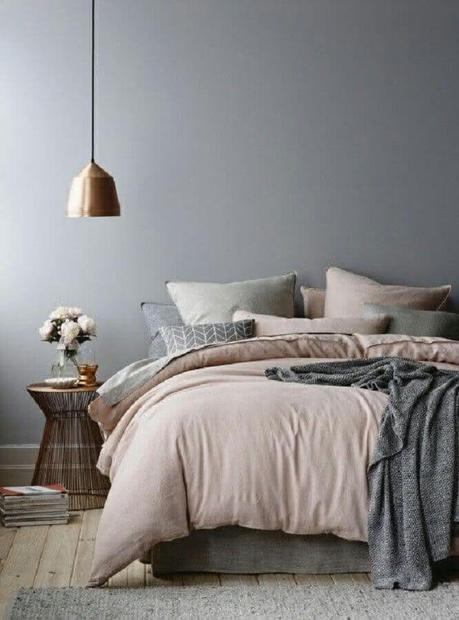 Em quartos pequenos os tons de cinza mais claros são escolhas mais interessantes para evitar que o ambiente fique com um aspecto ainda menor, já para o quarto grande os tons de cinza podem ser usados com mais facilidade.