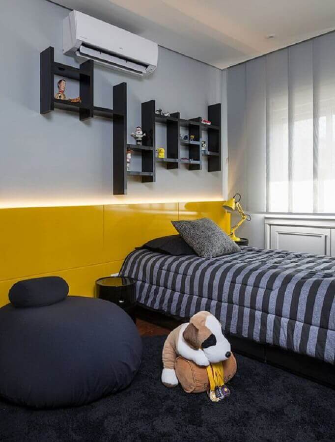 A decoração para quarto cinza e amarelo tem se tornado tendência, afinal, as duas cores se equilibram. Enquanto o cinza é garantia de um ambiente neutro e sóbrio, o amarelo chega para levar mais luz e alegria para o quarto cinza e amarelo.