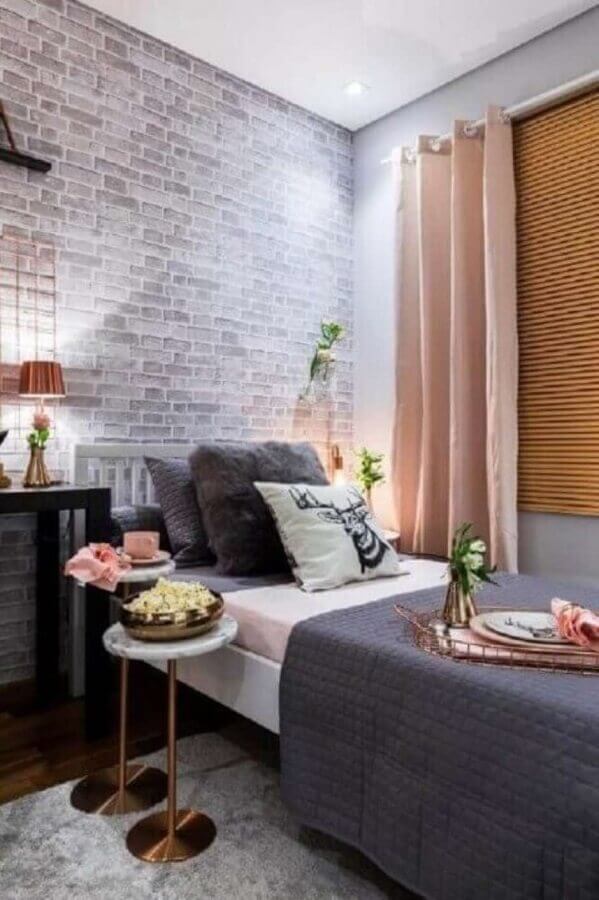 Para o quarto cinza e rosa jovem é interessante ousar um pouco nas tonalidades e usar um rosa mais chamativo ou mesmo trazer um toque moderno usando elementos com acabamento metalizado em rose gold, já para uma decoração mais delicada o mais interessante é investir no quarto cinza e rosa pastel trazendo bastante sensação de aconchego para o ambiente.