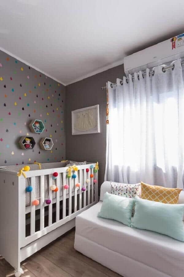 Os objetos decorativos fazem toda a diferença no quarto de bebê cinza, afinal, eles vão ser responsáveis por levar esse toque mais infantil ao ambiente, além disso, também é possível compor a decoração de quarto de bebê cinza com outras cores como rosa, amarelo, verde, azul entre outras.