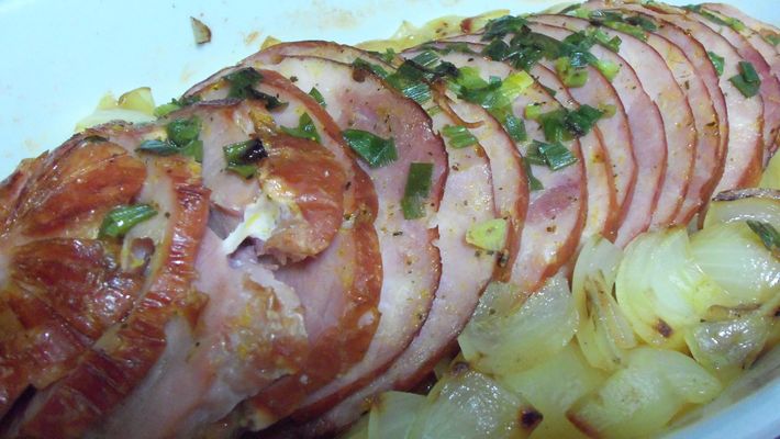- Distribua este creme por cima do tender fatiado, e coloque no forno para assar, por cerca de 15 minutos.