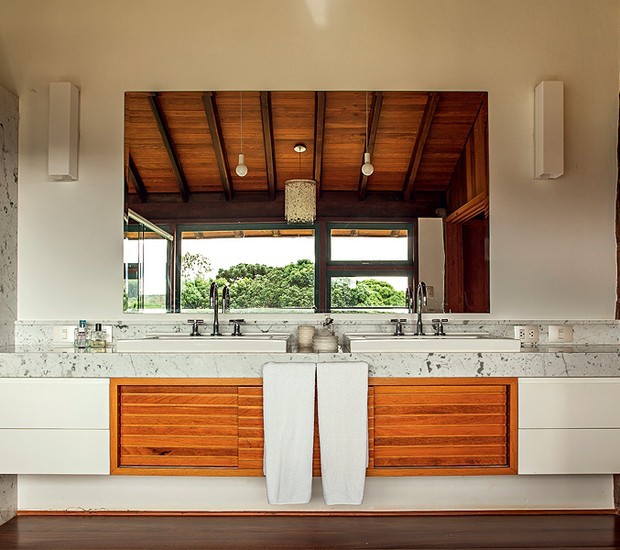 Um truque bastante usado pelos profissionais de decoração para garantir uma sensação de amplitude é abusar de cores claras e também de um grande espelho de banheiro. As cores claras fazem o espaço do banheiro parecer maior, enquanto o espelho reflete e dobra o espaço do ambiente.