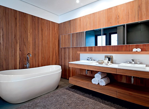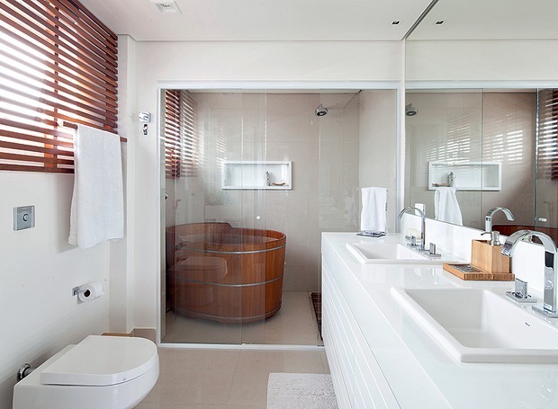Para quem quer um espaço de relaxamento de verdade, vale investir em uma banheira de louça ou ofurôs. Existem projetos que também incluem sauna a vapor e chuveiros ou duchas com jato direcionado que deixam qualquer espaço com clima e cara de SPA.