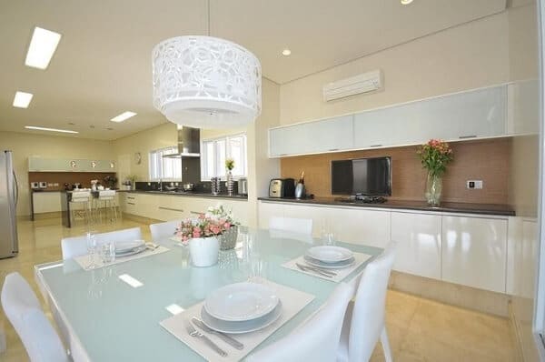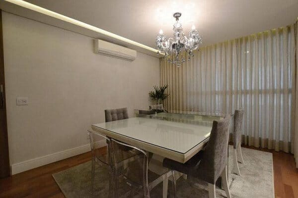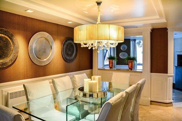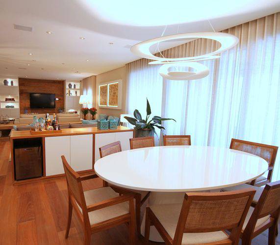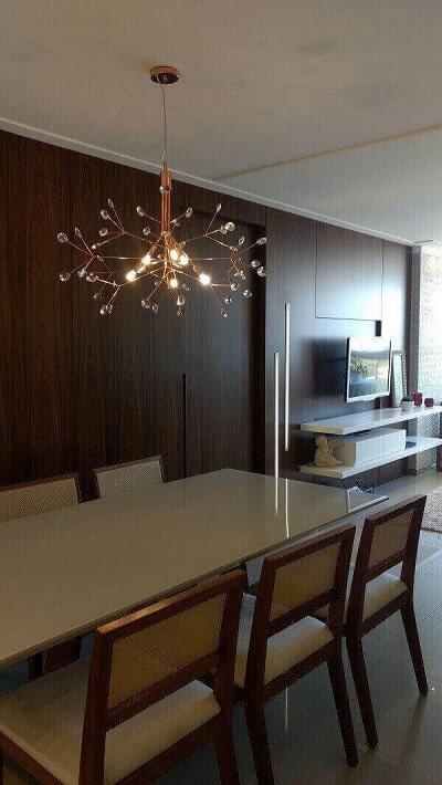 Independentemente disso, os lustres para sala de jantar e outras salas devem ser harmoniosos com o ambiente, seguindo o mesmo estilo do restante da decoração.