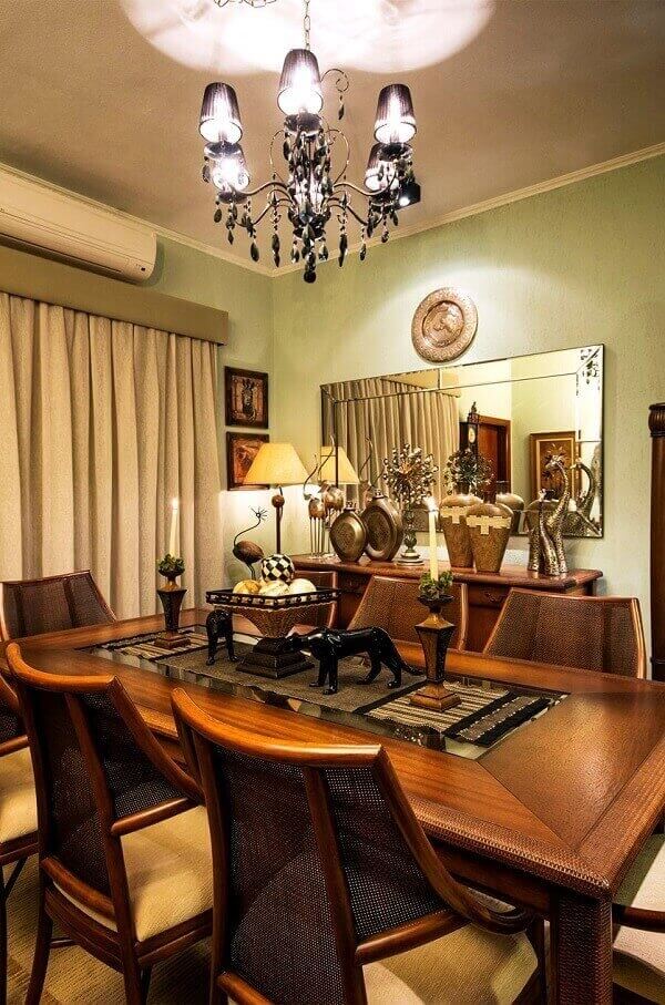 Ao contrário do que muita gente pensa, o estilo rústico pode estar em casas e apartamentos nos centros urbanos e não somente em casas de fazendo ou campo. Inclusive, esse tipo de lustre para sala de jantar e outras salas costuma ser visualmente mais pesado por ser composto majoritariamente por ferro e ser bastante detalhado.