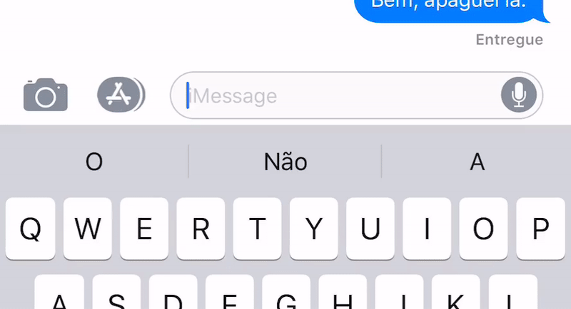 Vamos tirar logo isso do caminho: caso você não queira de jeito nenhum ver aquela fileira de ícones de apps tomando espaço vertical da sua tela, é possível escondê-la. Basta tocar no botão imediatamente à esquerda do balão de composição de mensagem, com um símbolo igual ao da App Store, e a gaveta sumirá da sua vista.