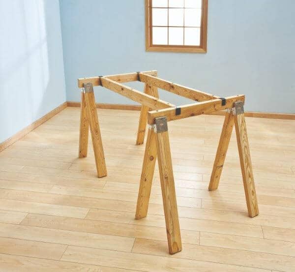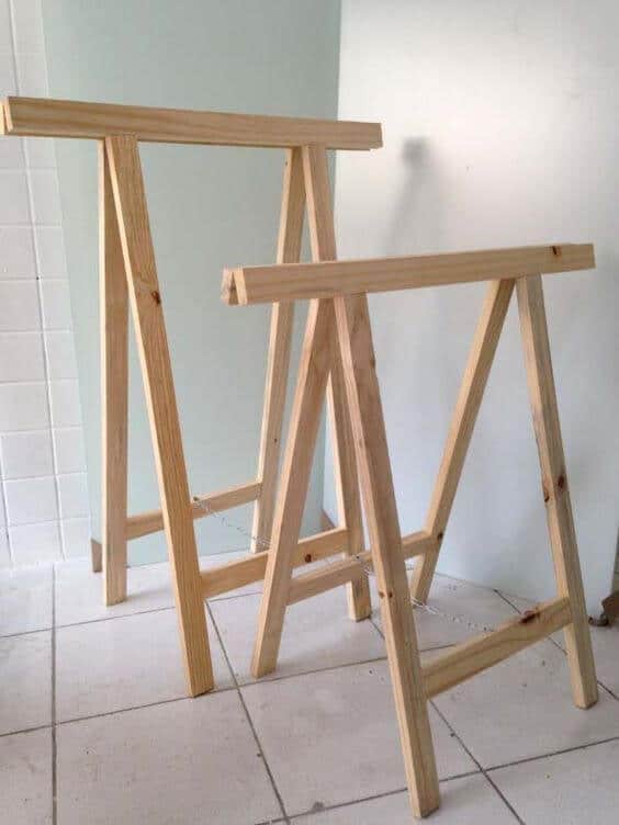 Uma vantagem é que você pode adicionar prateleiras no cavalete de madeira para mesa e garantir um espaço a mais para colocar um aparelho de som ou itens decorativos na sala de estar. Interessante, né?