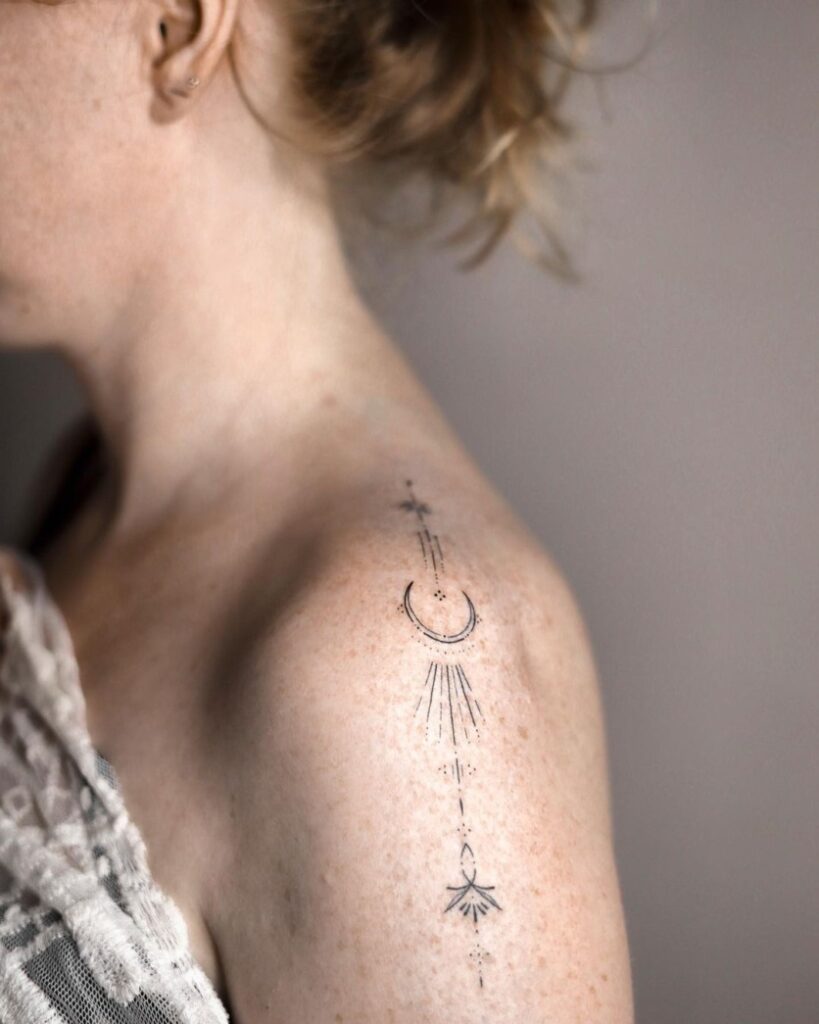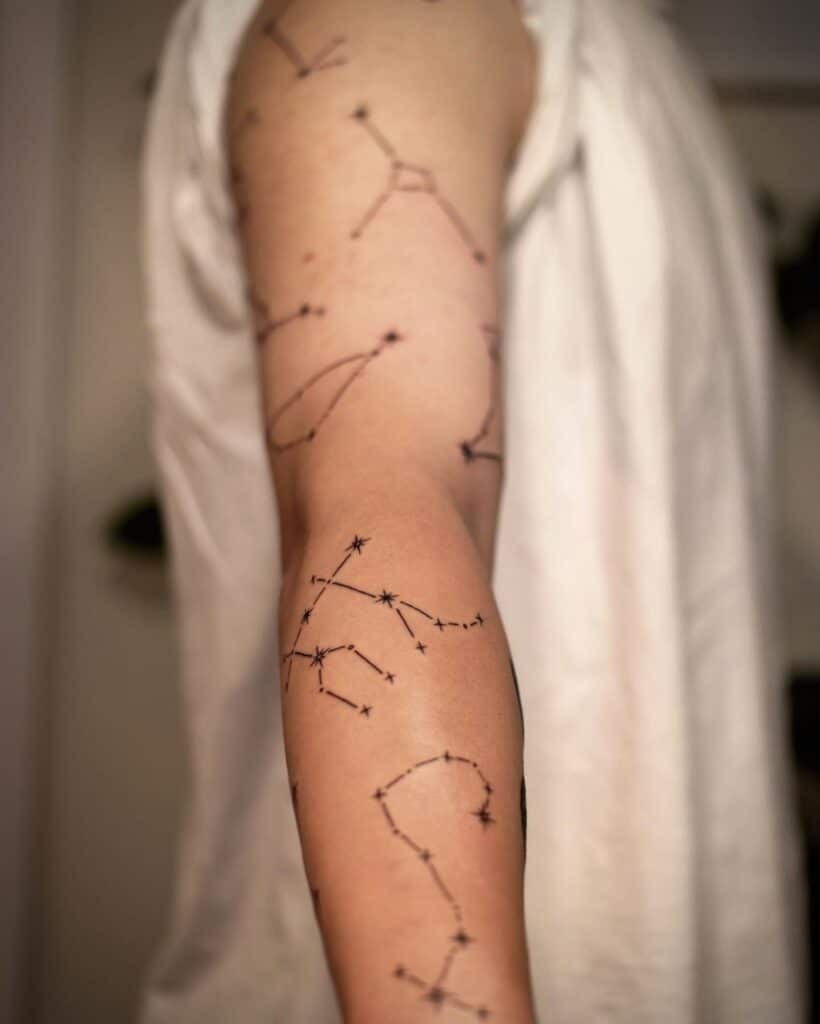 - Tatuagem de signos: seja seu sol, ascedente, lua ou vênus, a ideia é mostrar a sua personalidade através de uma linda constelação ou símbolo. Você também pode tatuar a representação do signo de alguém importante para você.