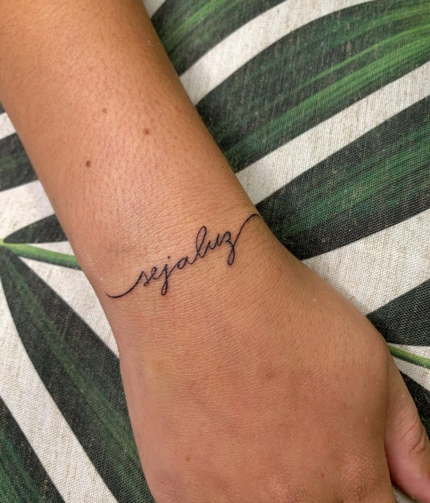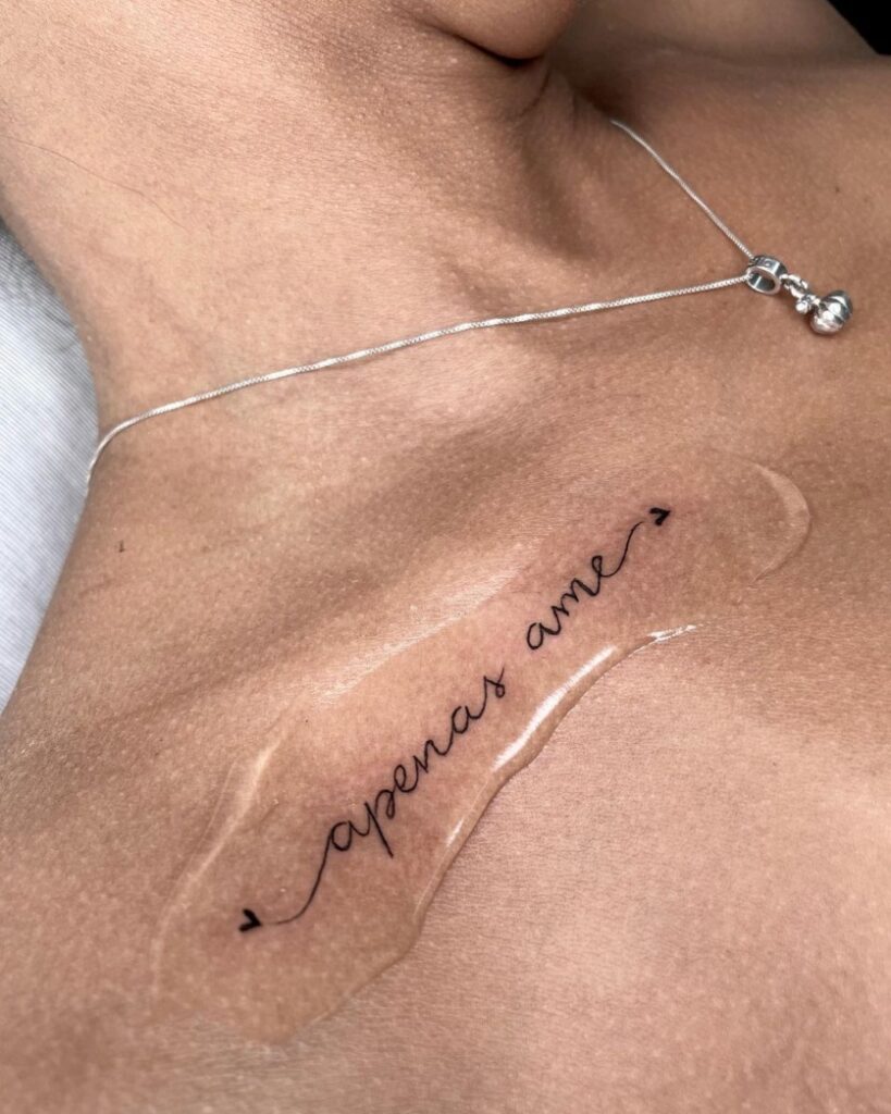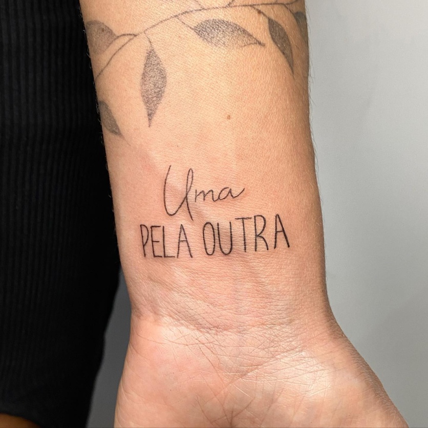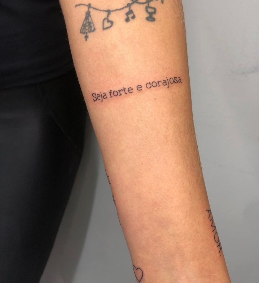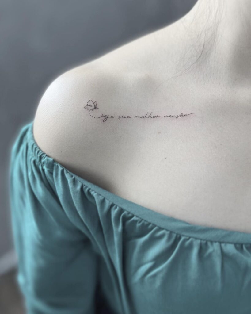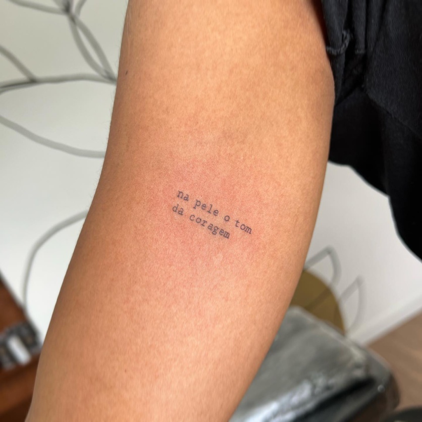 - Tatuagem de frases: que tal estampar aquela frase marcante na pele e com uma fonte bem delicada? Pode ser um trecho de uma música, de um livro, de um filme ou palavras especiais que alguém te disse. O importante é que a frase para tatuagemseja importante para você.