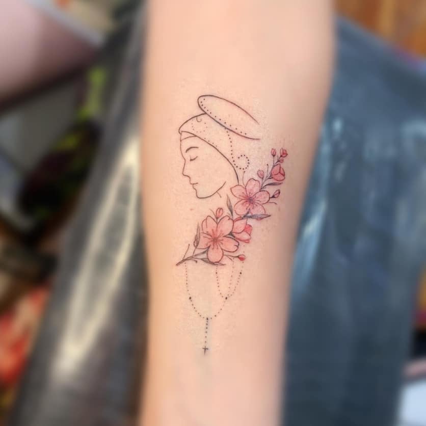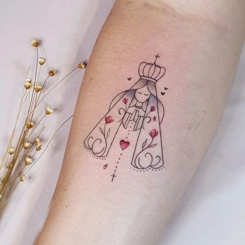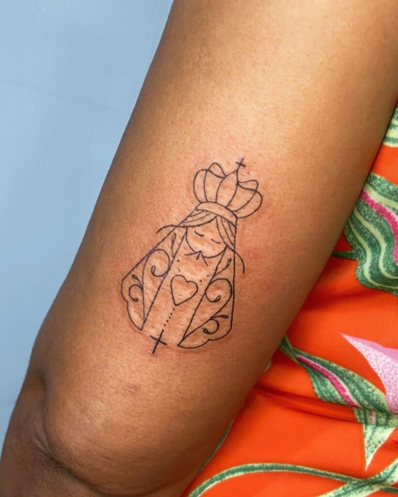 - Tatuagem de santos: também é possível marcar sua devoção a algum santo ou santa na pele. Símbolo de fé, esse tipo de tatuagem é muito pedida e fica cheia de significado.