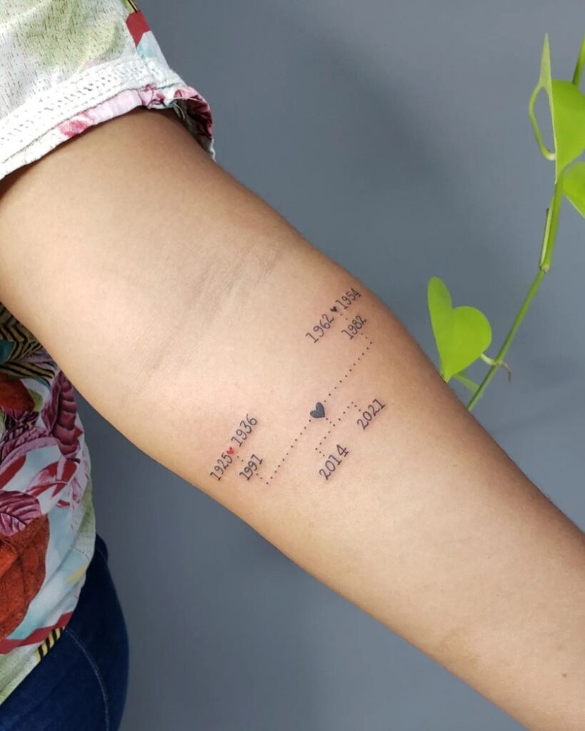 - Tatuagem de datas e horários: também carrega um significado íntimo, datas e horários são perfeitas para eternizar, por exemplo, o dia e a hora que um parente nasceu. Para as românticas, é ideal para simbolizar a data e o horário do casamento ou do primeiro beijo.