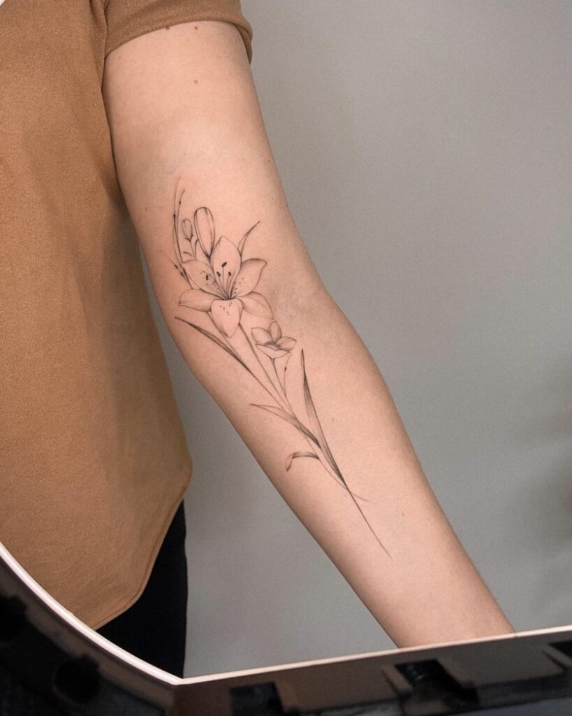 - Tatuagem de flor: por ser versátil e cheia de possibilidades, a tatuagem de flor agrada diferentes gostos e estilos. No geral, essa tattoo represente leveza, vida, beleza e delicadeza.