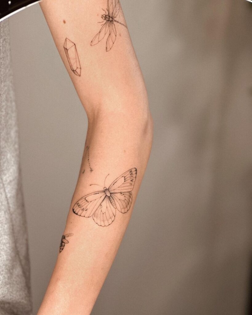 - Tatuagem de insetos: os significados também variam. Porém, a tatuagem de borboleta é bem conhecida, sendo símbolo de alegria, leveza e transformação. Já as tatuagens de besouro significam eternidade e sabedora.