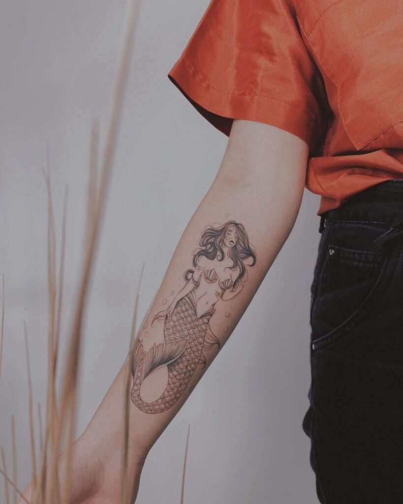 - Tatuagem de mar: desenhos de onda, por exemplo, representam tranquilidade e calmaria. Já uma tattoo de água-viva é a representação perfeita de beleza, originalidade e força da simplicidade.