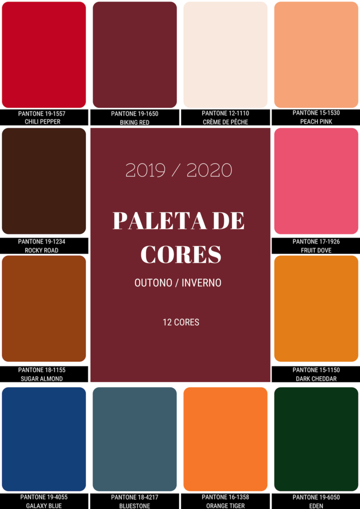 São 12 tendências de cores e 4 cores básicas que foram reeditadas para a temporada. De acordo com especialistas em cores do Instituto de cores Pantone, as cores para o Outono/Inverno 2019/2020 refletem um surgimento de confiança, ousadia e força. Uma coleção de cores que são relacionáveis e que sugerem uma sede de libertação e um desejo de perceber nossas próprias identidades únicas e individualizadas.