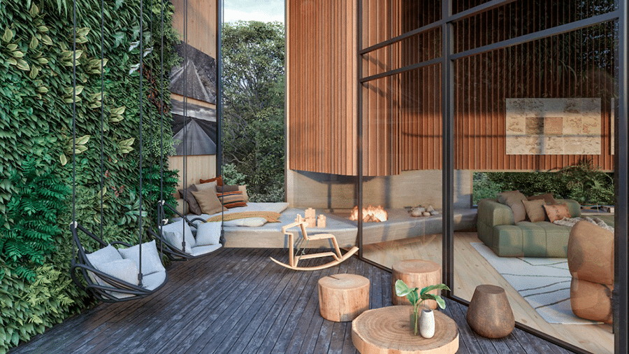 Inspirado pela natureza, o design orgânico ganha mais força, trazendo para dentro de casa formas fluidas e materiais naturais. Móveis com formas arredondadas e texturas que imitam a natureza, como o uso de pedras, madeira e fibras naturais, vão se destacar em 2025. O uso dessas texturas tem o poder de criar ambientes acolhedores e calmantes, perfeitos para a busca do equilíbrio emocional.