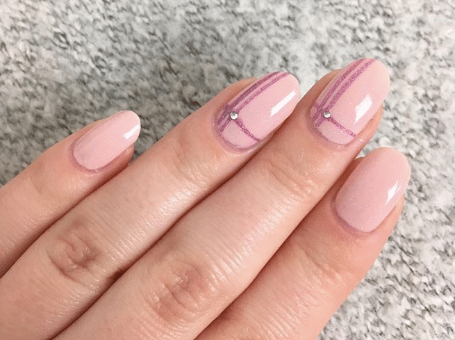 Nail art rosa com detalhes minimalistas em lilás deixam as mãos modernas e chiques