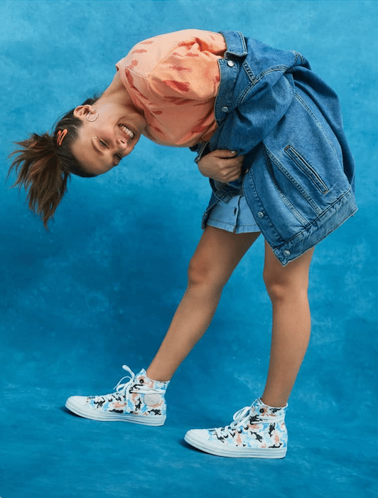Sou fã assumido do tênis All Star, Millie Bobby Brown também deu um passo além na sua relação com a Converse e acabou de assinar uma coleção inteira do modelo Chuck Taylor com a sua cara. Chamada de Millie by You, a collab foi inspirada no oceano, uma das grandes paixões da atriz, e também poderá ser customizada pelos consumidores no site da marca. Demais, né?